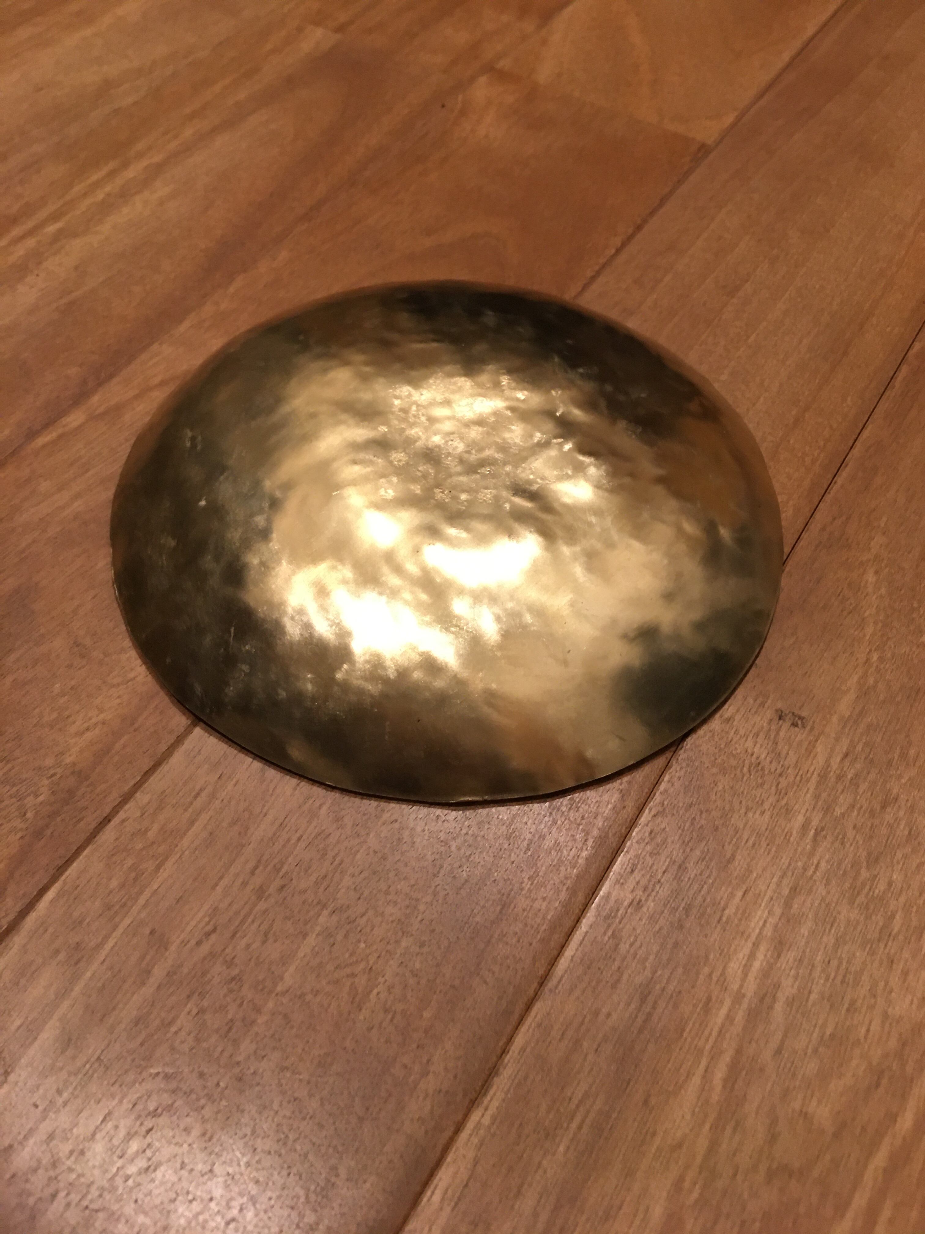 厚さ2mmの真鍮の板を金槌で叩いて、成形しています。