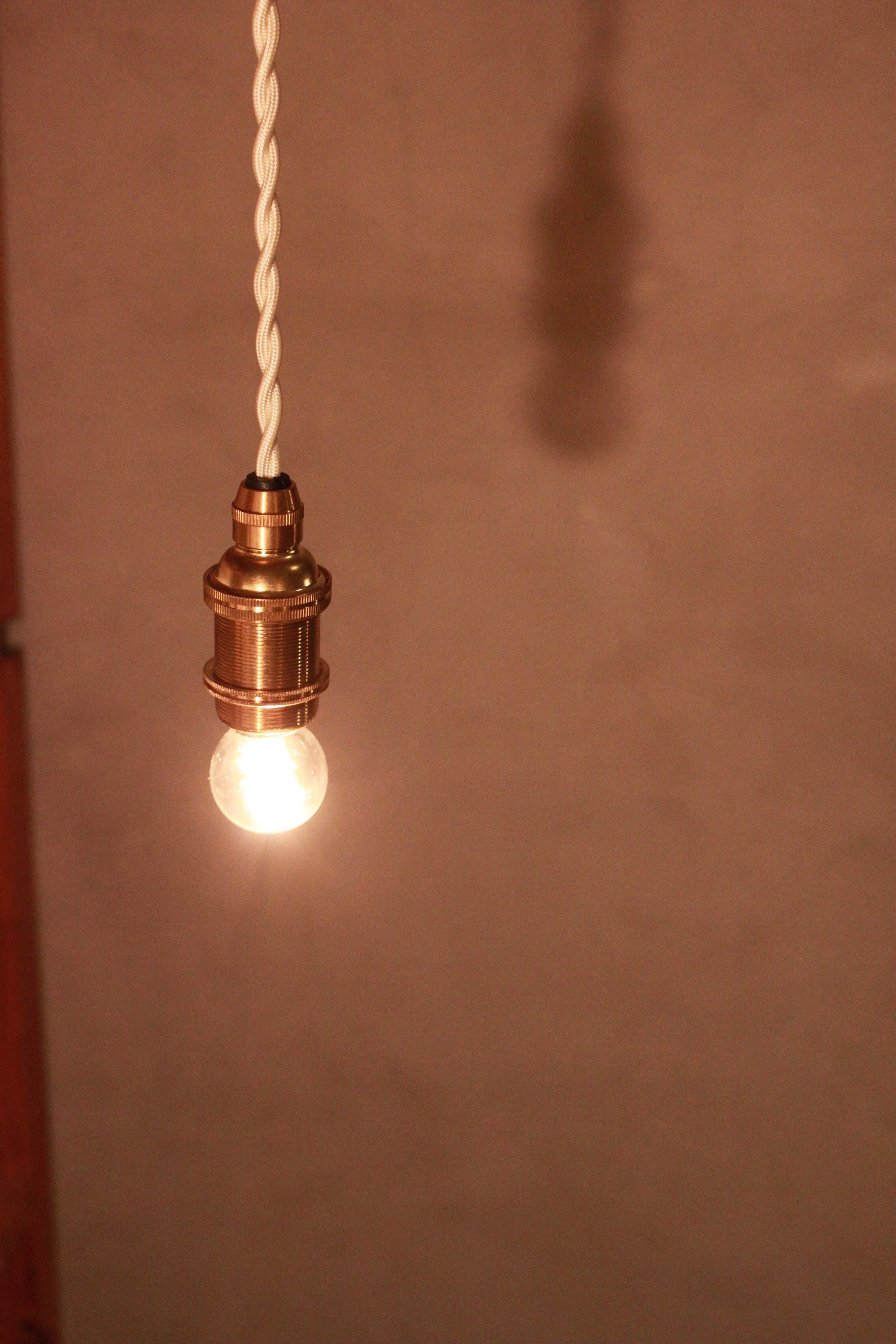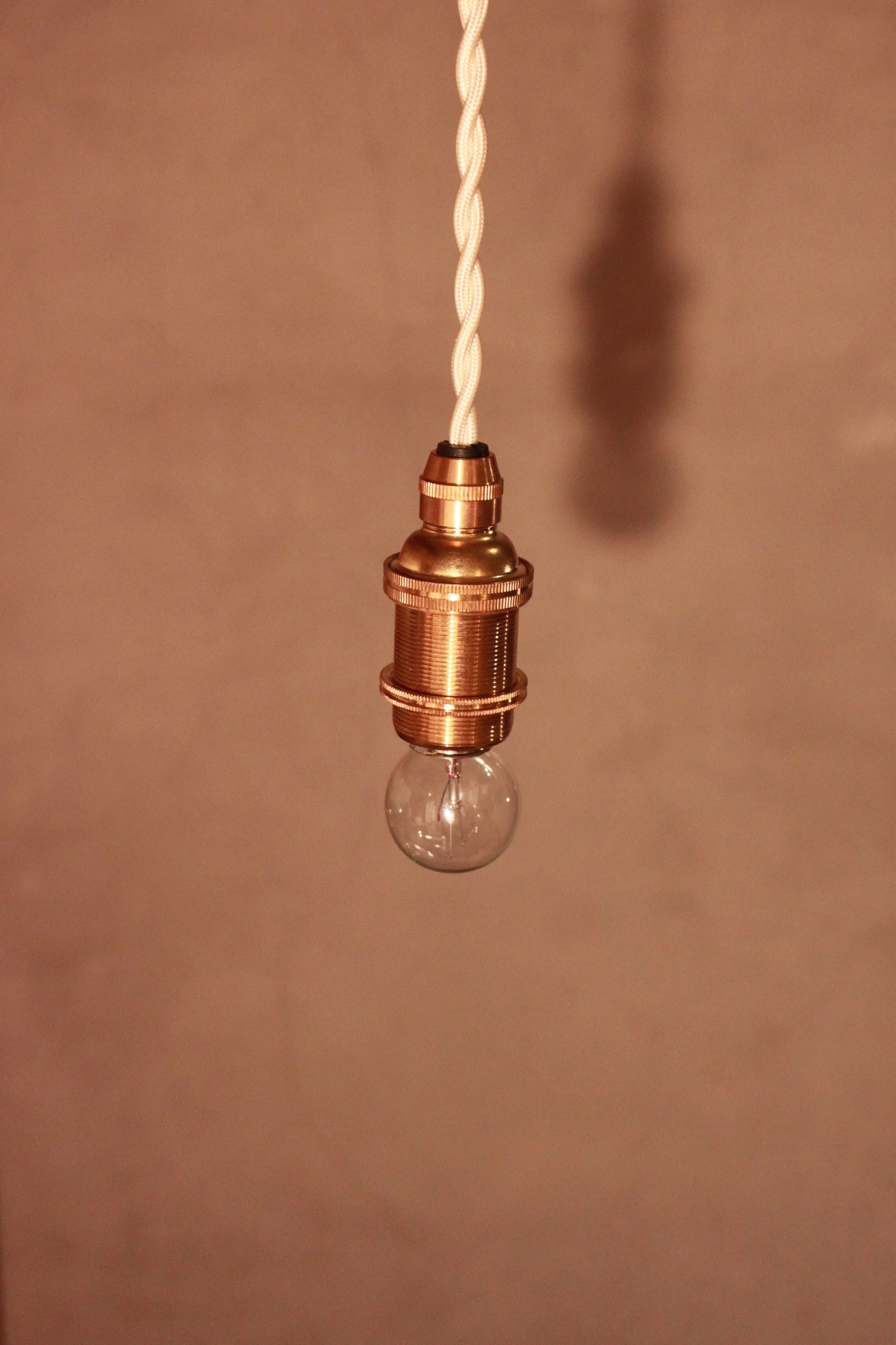 ゴールドの真鍮ソケットとホワイトのツイストコードの簡素な構成ですが、なぜか全ての部屋や環境において、凛とした可愛らしさを持ちつつ馴染みます。