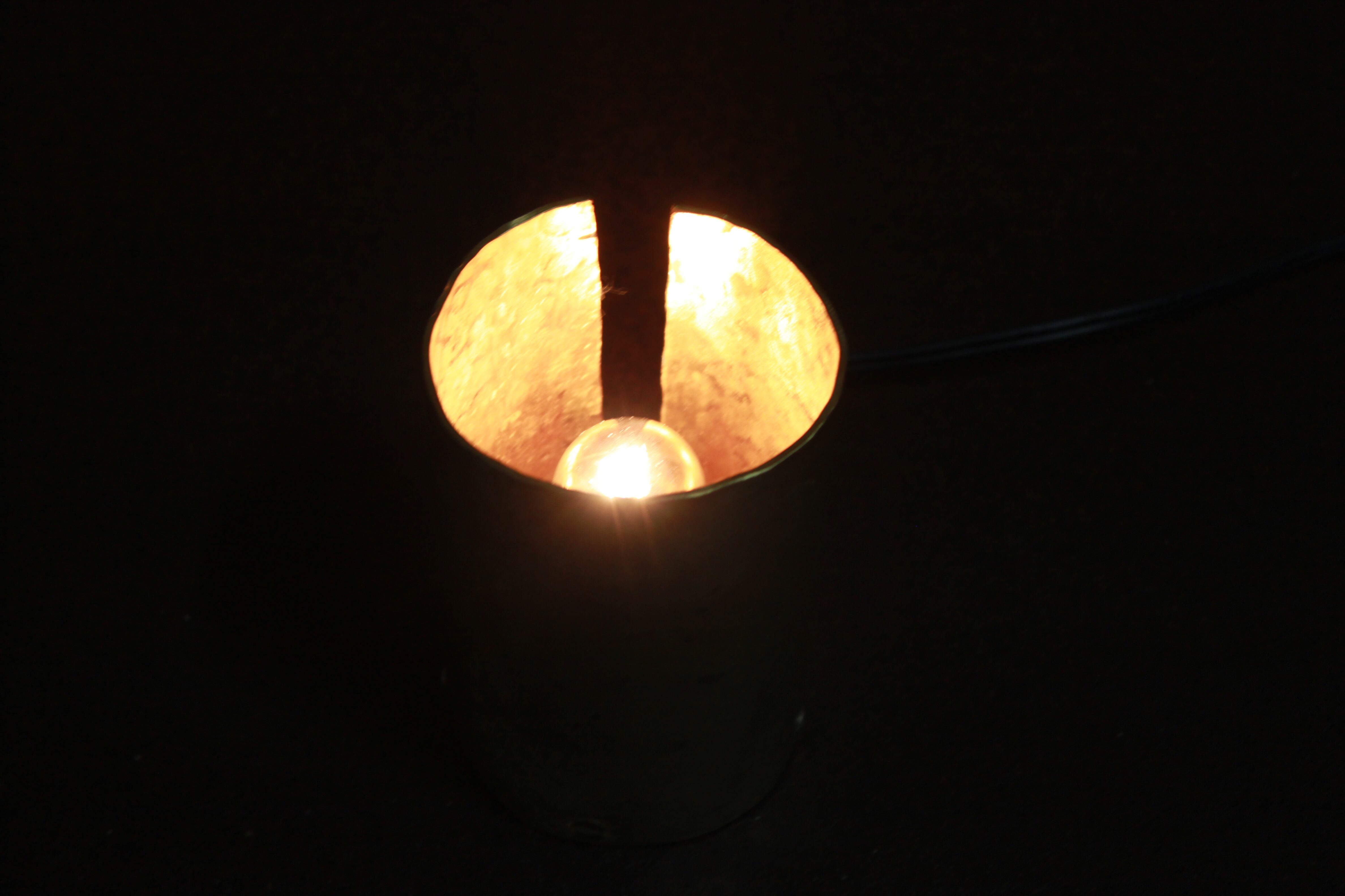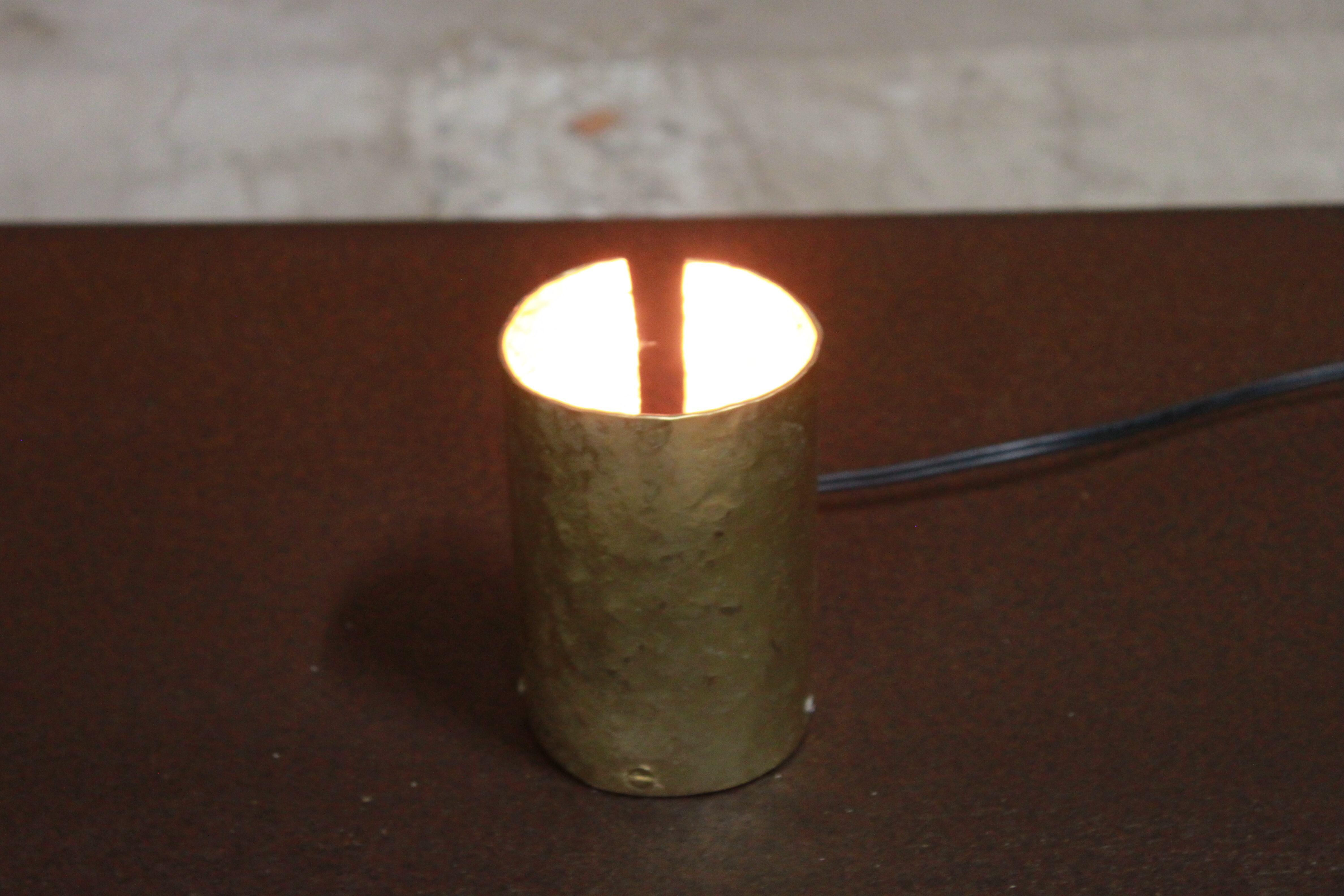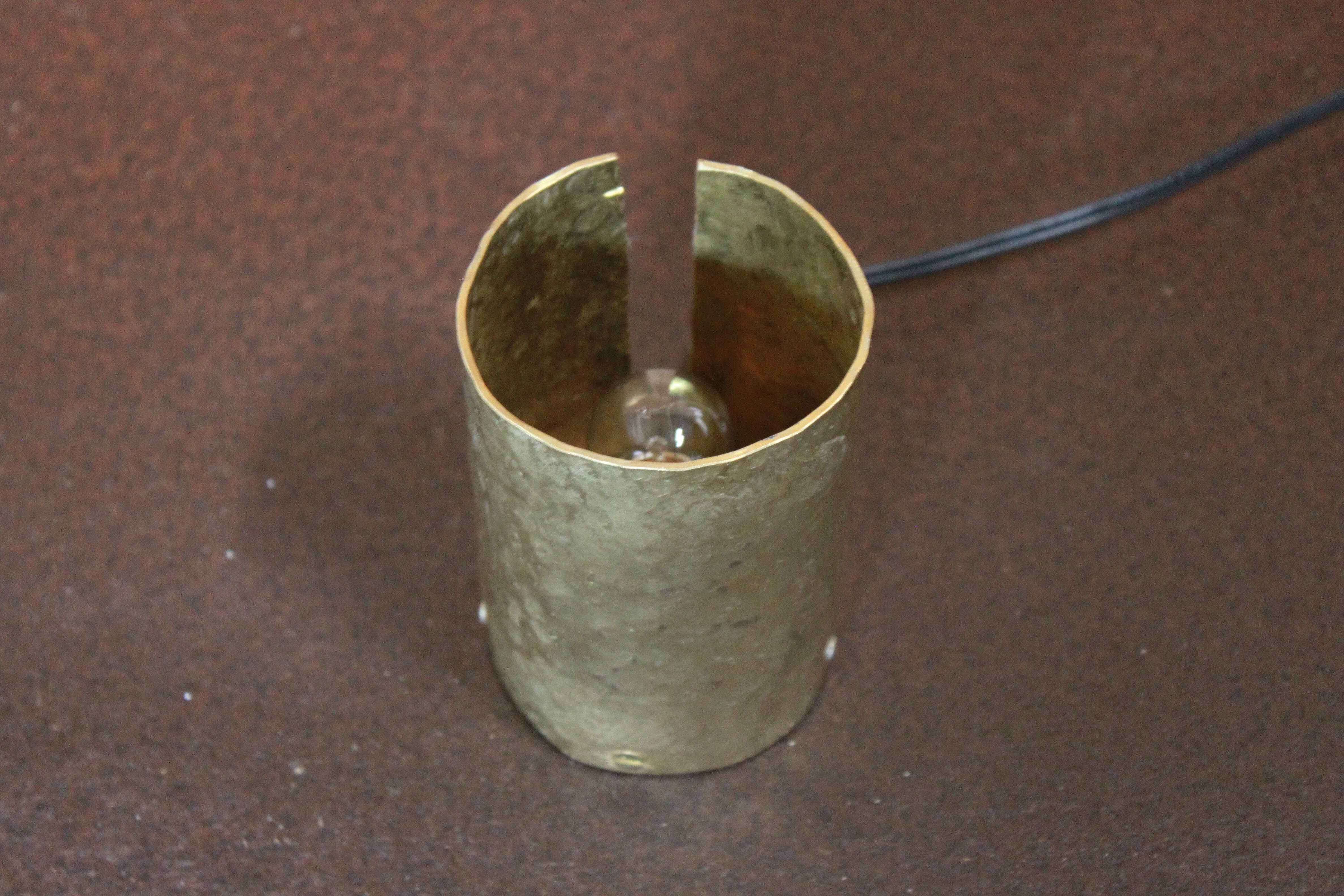 シェードは厚さ2mmの真鍮の板をハンマー1本で成形しています。仕上げは、あえて素地のままにしてあります。