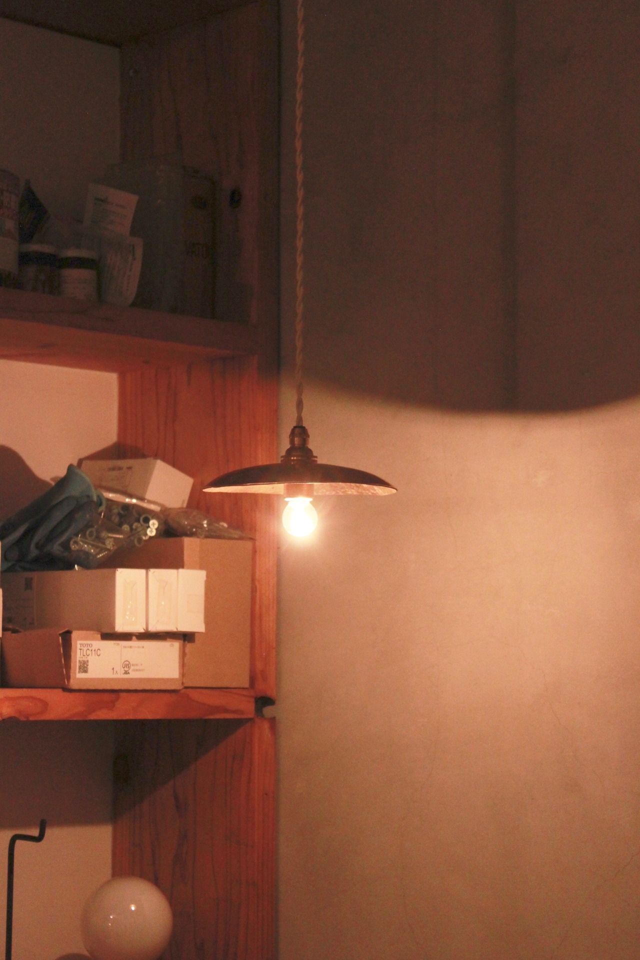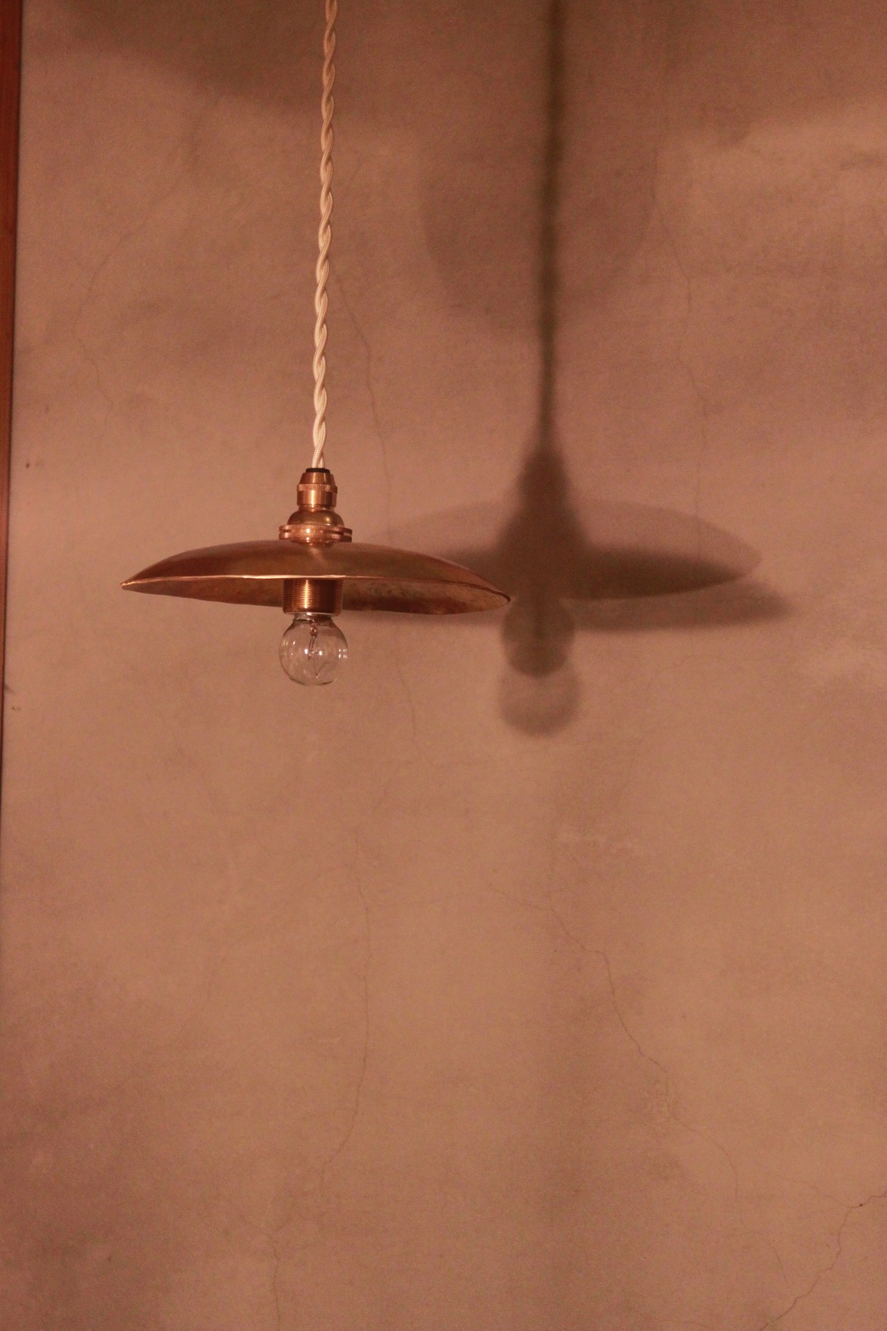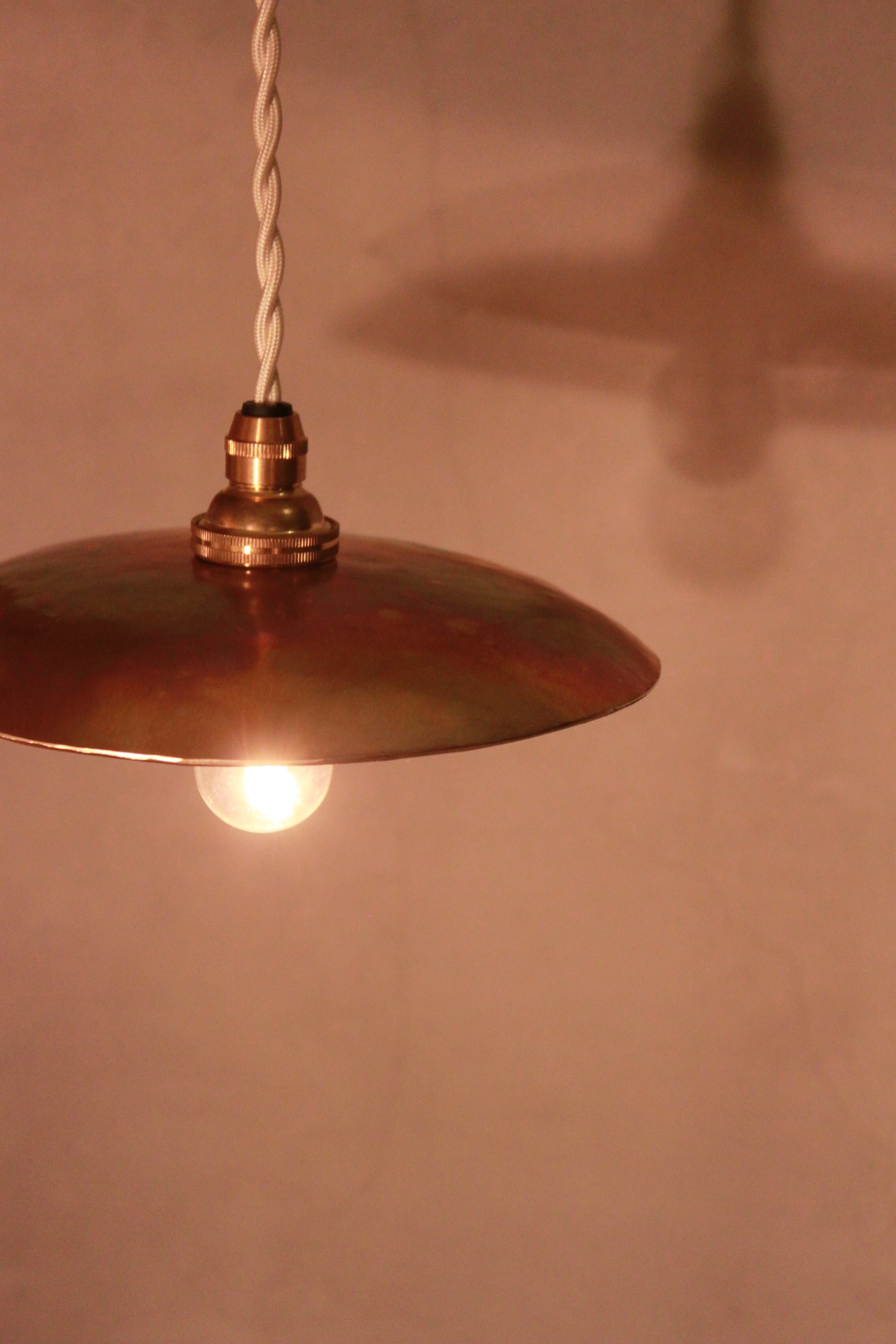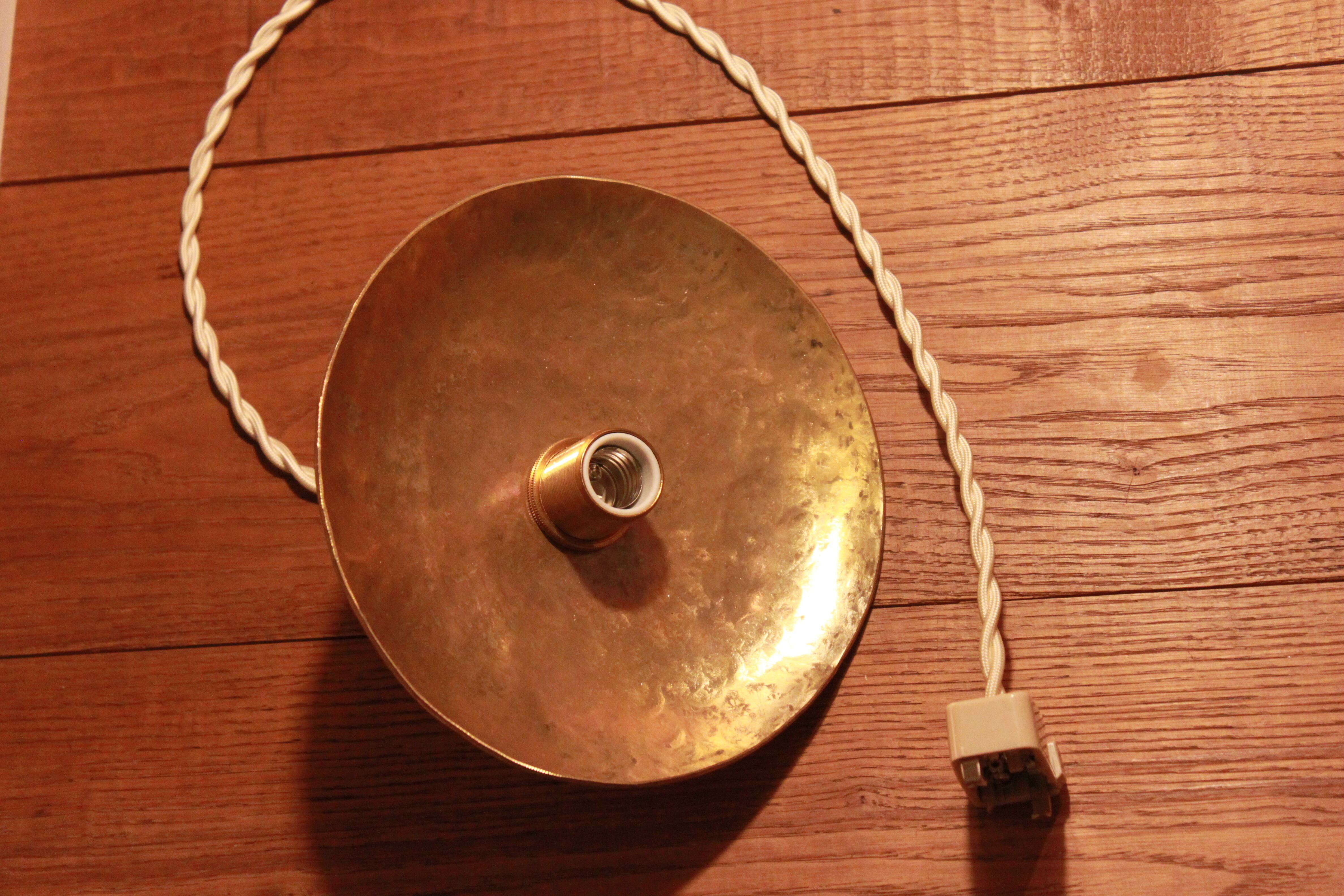 シェードは厚さ2mmの真鍮の板を金槌で叩いて、成形しています。